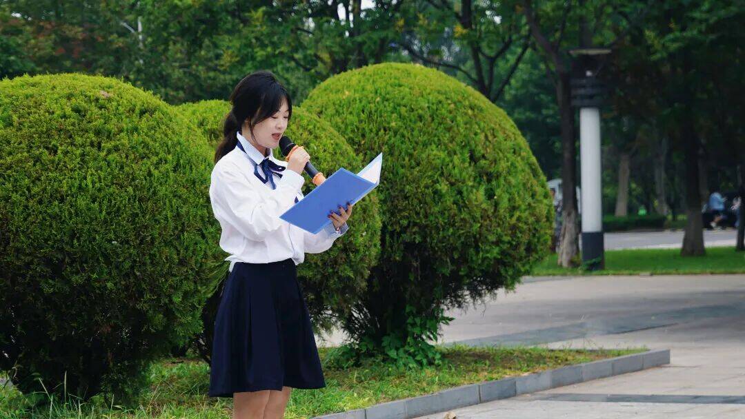 随后,来自信息工程系的学生代表秦颢毓进行了“以青春之学,筑爱国之基”为主题的国旗下演讲。