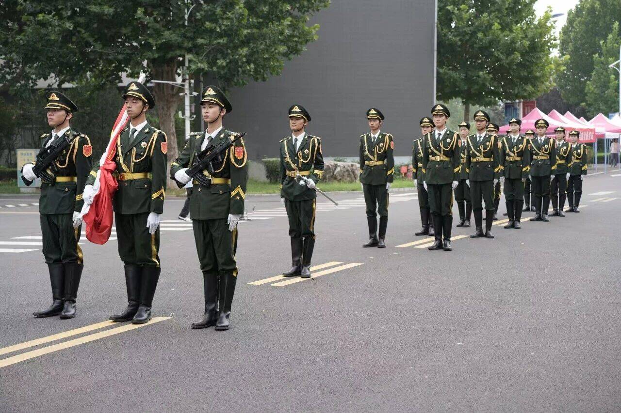国旗护卫队的同学们迈着坚定、有力的步伐,护卫着鲜艳的五星红旗走向升旗台。他们的身影在晨光中显得格外挺拔,每一个动作都彰显着青春的坚毅与忠诚。